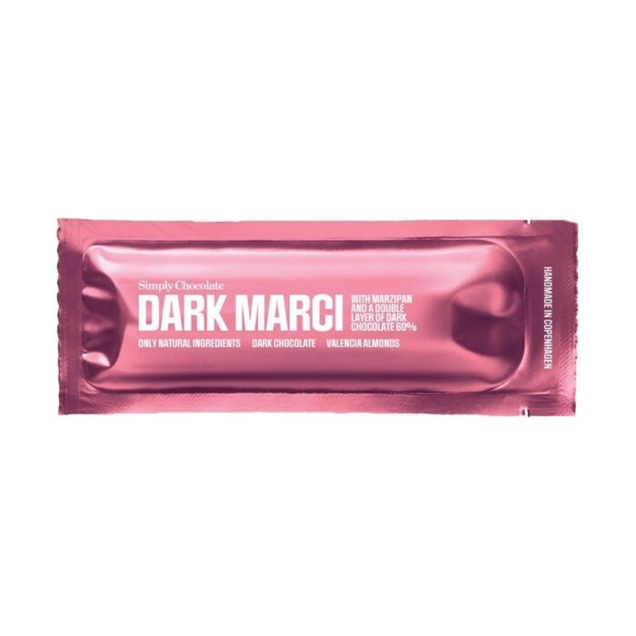 Dark Marci fra Simply Chocolate er den perfekte gave til chokoladeelskere. Den lækre chokoladebar er lavet af premium mørk chokolade og har en blød kerne af ren marcipan. Det er den perfekte kombination af sødme og cremethed, som vil glæde enhver chokolad, Chokoladebar | Dark Marci.