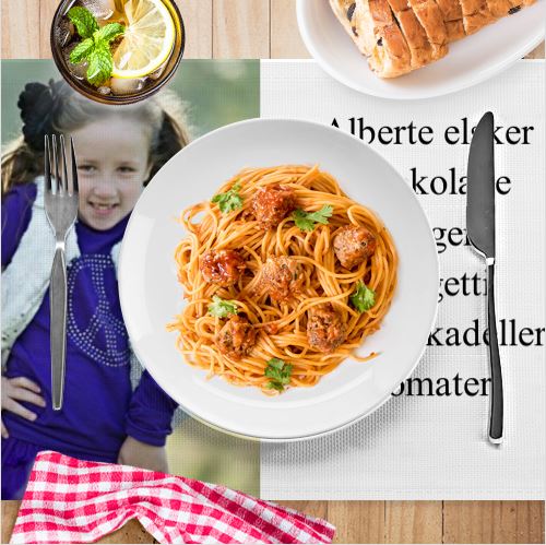 Få foto og evt. tekst på dine dækkese, Dækkeserviet med foto 50 x 35 cm økotekstil.