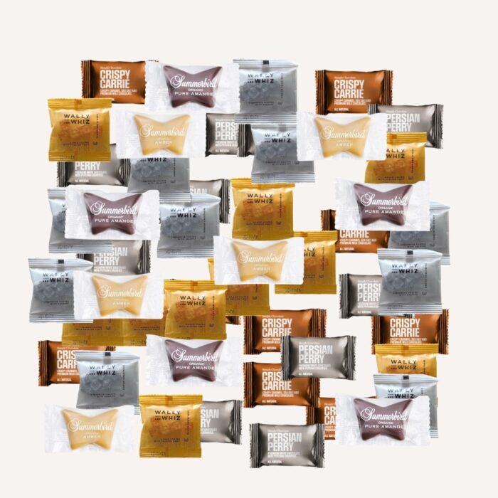 En lækker kurv med en masse små favoritter., Flowpack pakke.