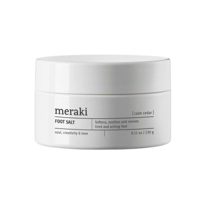 Få velplejede fødder med denne fodbadesalt fra Meraki. Calm Cedar er lavet af havsalt, som blødgør, afslapper og genopfrisker dine fødder efter en lang dag. Tag en velfortjent timeout med et varmt fodbad, mens du nyder den forfriskende duft af eukalyptus,, Fodsalt | Calm cedar.