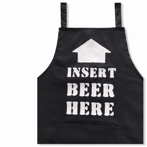 Smart grill-forklæde til grillmesteren. Den helt perfekte gave til manden!Der er flere forskellige tekster at vælge imellem. Et sikkert hit til grill-entusiasten!Justerbar nakkestrop.Strygefrit og sanforiseret, som betyder at stoffet højst må krympe 1 % v, Forklæde – INSERT BEER HERE.