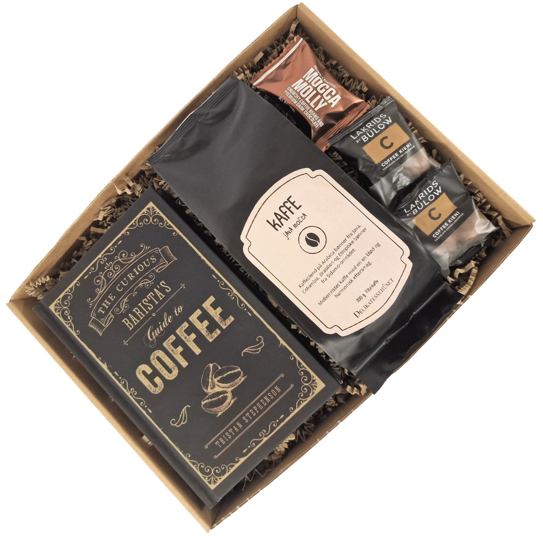 Kender du en der bare elsker kaffe? Så er denne sammensatte gave et perfekt valg. Hvis du skal sige tillykke, tak, god bedring eller bare fordi, så er denne ultimative kaffe-kurv et rigtig godt bud. I gaven findes der både kaffe, chokolade samt en kaffegu, Gave | Coffee Lover.