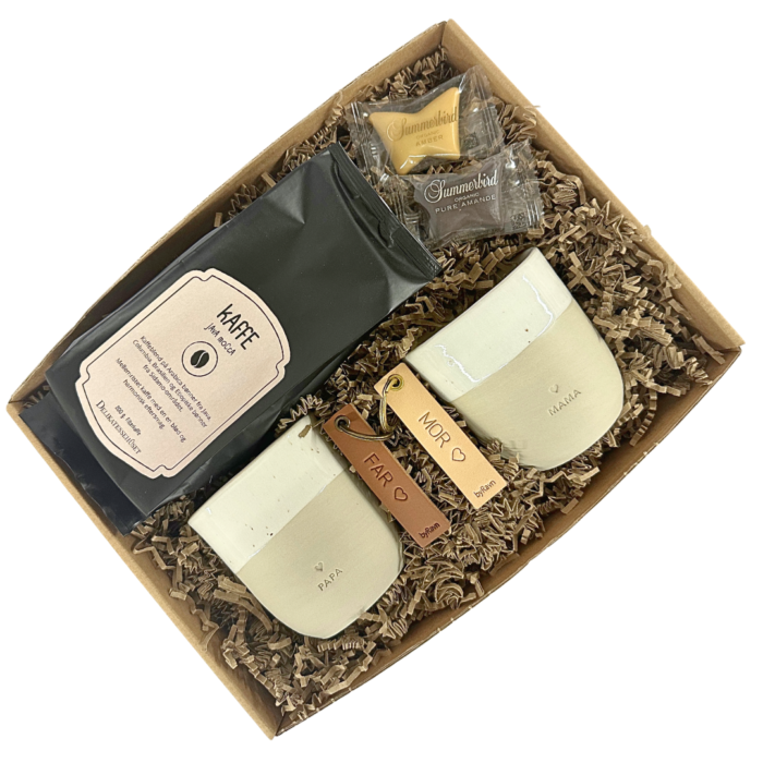 Fortjener dine forældre en sød overraskelse? Denne gave er perfekt sød gave til dine forældre som de vil sætte stor pris på. Sammensætningen af produkter i denne gave er nøje udvalgt fra de bedste producenter. I kurven finder du bl.a. Kaffekrus med tekste, Gave | Til mor & far.