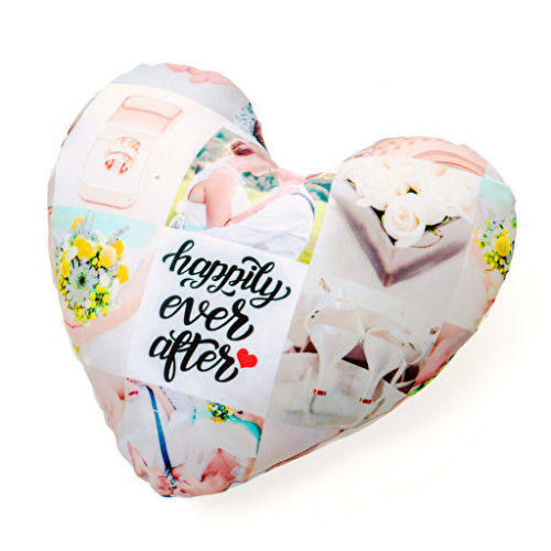 Håndsyet hjerte fotopuden er 42 x 40 cm og trykt på en super god kvalitet