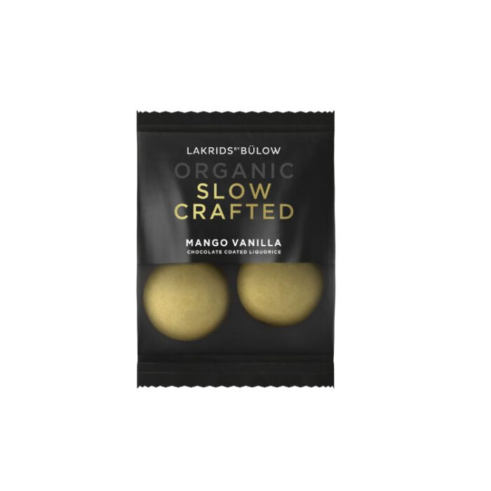 Det er lykkes Lakrids by Bülow at lave en magisk kombination af eksklusive økologiske råvarer; nemlig frisk og frugtig alphonso mango og sød bourbon vanilje i en himmelsk hvid chokolade. Den er trukket over deres helt specielle Slow Crafted lakrids, som g, Lakrids by Bülow | Slow Crafted Mango Vanilla | mini.
