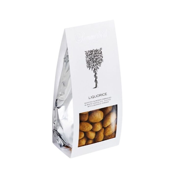 Summerbird’s mandler med lakrids er den perfekte snack til enhver lejlighed. De let ristede mandler er dækket med et tyndt lag praliné og hvid chokolade og afslutningsvis vendt i lakridspulver. En lækker og unik kombination af sødme og salthed, der vil gl, Mandler | Lakrids.