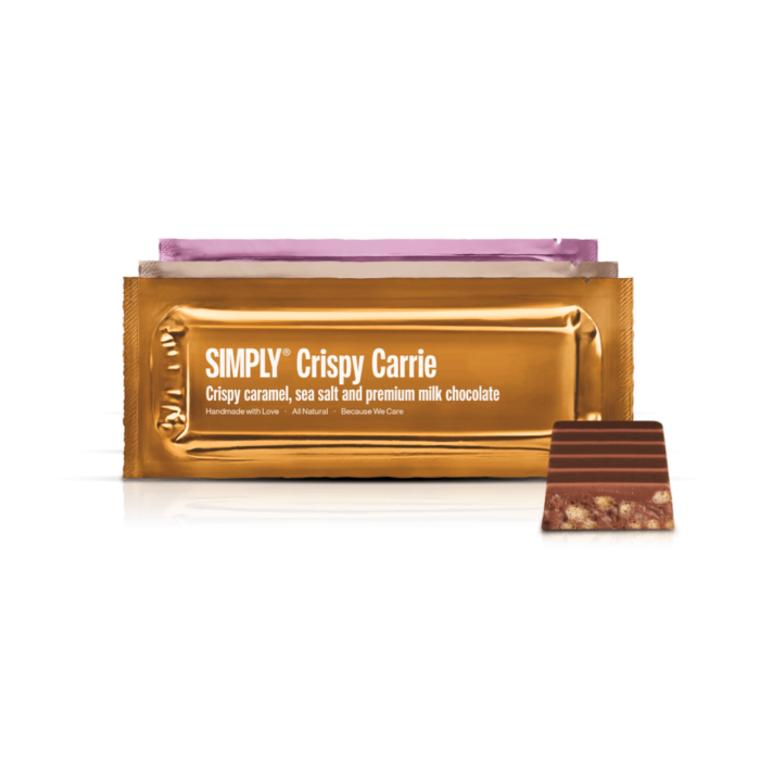 2 x Simply® Crispy Carrie Knasende karamel, havsalt og premium mælkechokolade 2 x Simply® Dark Marci Marcipan dobbeltovertrukket med premium mørk chokolade 2 x Simply® Cookie Joe Cookie dough, chokolade chunks og premium mælkechokolade Fyldt med naturlige, Our Favorites 6-pack | Smag 3 af vores favoritter.