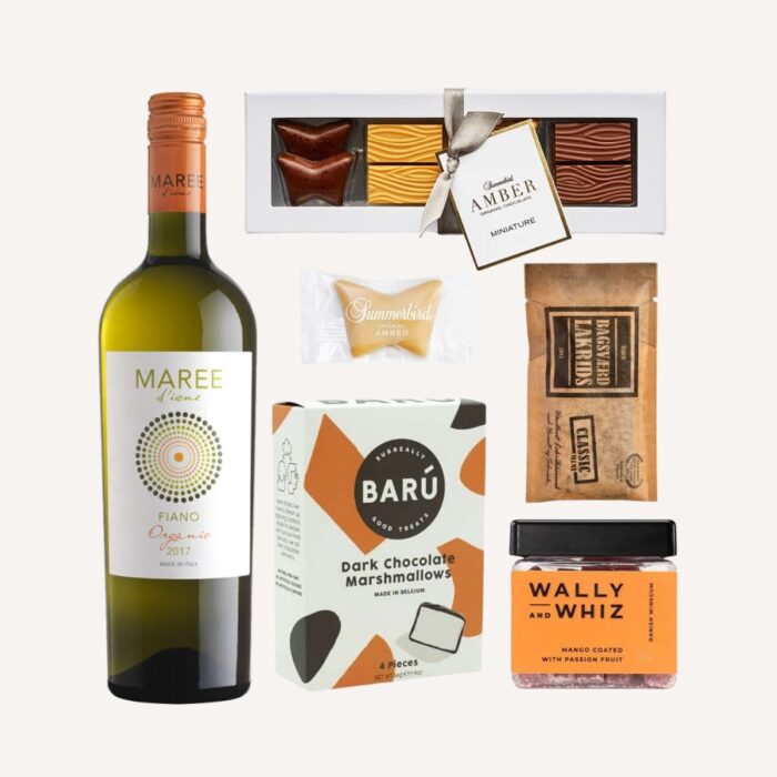 Forkæl din modtager med en uforglemmelig påskekurv. Denne gavekurv kombinerer smagfuld chokolade og festlige lækkerier med en forfriskende økologisk hvidvin. Den perfekte påskegave til voksne., Påskekurv | Hvidvin.