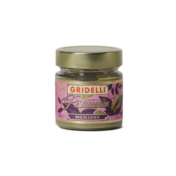 Sød og silkeblød pistaciecreme fra Sicilien i en lys pink indpakning. Listen over muligheder for dets brug er omfattende. Alt fra at servere som dessert sammen med mørk chokolade og friske bær, til at smøre på hvidt brød og nyde det til en luksuriøs morge, Pistaciecreme.