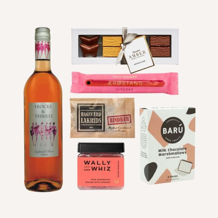Denne gavekurv indeholder ikke bare produkter i dejlige farver, men også nogle af vores personlige pink favoritter. Den californiske rosévin er lavet på den populære Zinfandel drue, og har skønne sommerlige smagsnuancer af bla. jordbær og kirsebær. Udover, Prægtige pink.