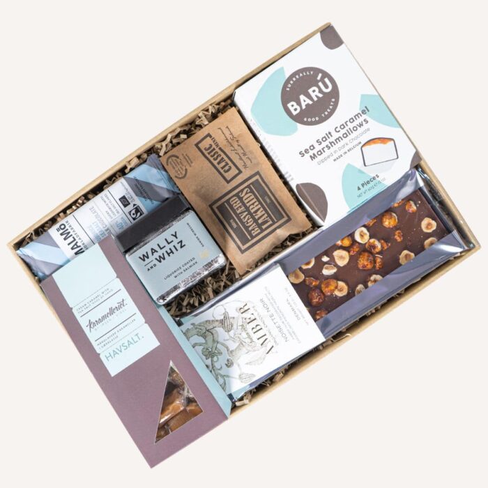 En lækker gavekurv til slikmunden. Gavekurven er fyldt med lækker kvalitets chokolade fra Summerbird. Lakrids fra Bagsværd lakrids, karameller, vingummi og skumfiduser., Slikmunden.