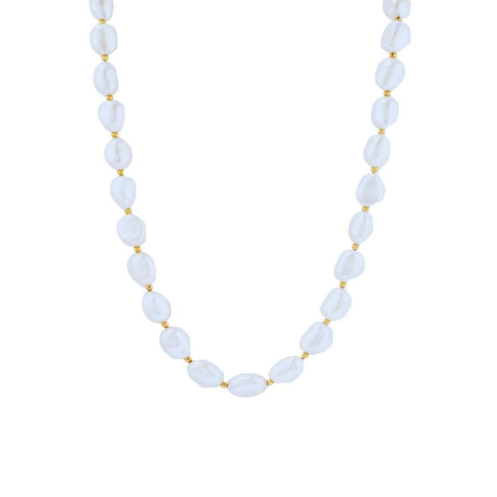 Smuk halskæde med ferskvandsperler og forgyldt med 18K guld – By Stær
