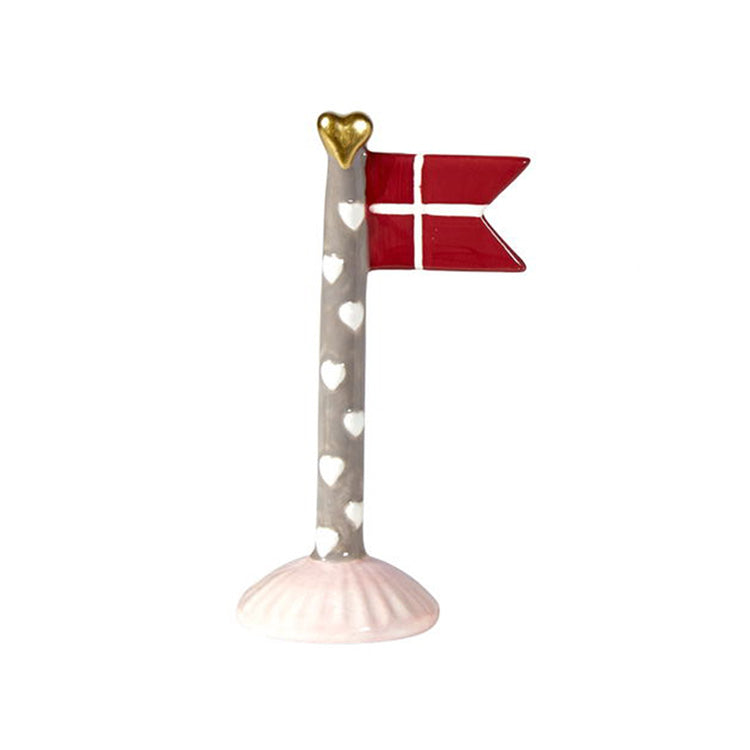 De flotte og unikke keramik fødselsdagsflag fra Speedtsberg. Den fantastiske dekoration til fødselsdagen. Kan stå på det opdækkede bord, i vindueskarmen eller som dekoration på kommoden. Pyntet med hjerter ned af flagstangen. 8x5x14cm, Speedtsberg | Lille flag med hjerter (Brun).