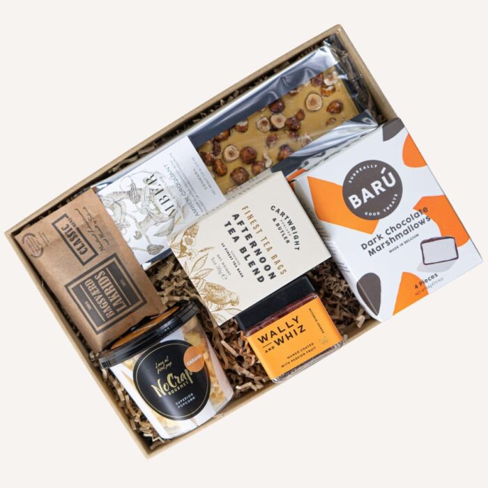 En lækker gavekurv fyldt med de lækreste snacks til at vise omsorg, til en der fortjener det. Denne gavekurv er en ‘god bedring’ gave, som indeholder chokolade, skumfiduser, te, kaffe og popcorn. Indholdet af gavekurven er kvalitetsprodukter fra Summerbir, Tanker til dig.
