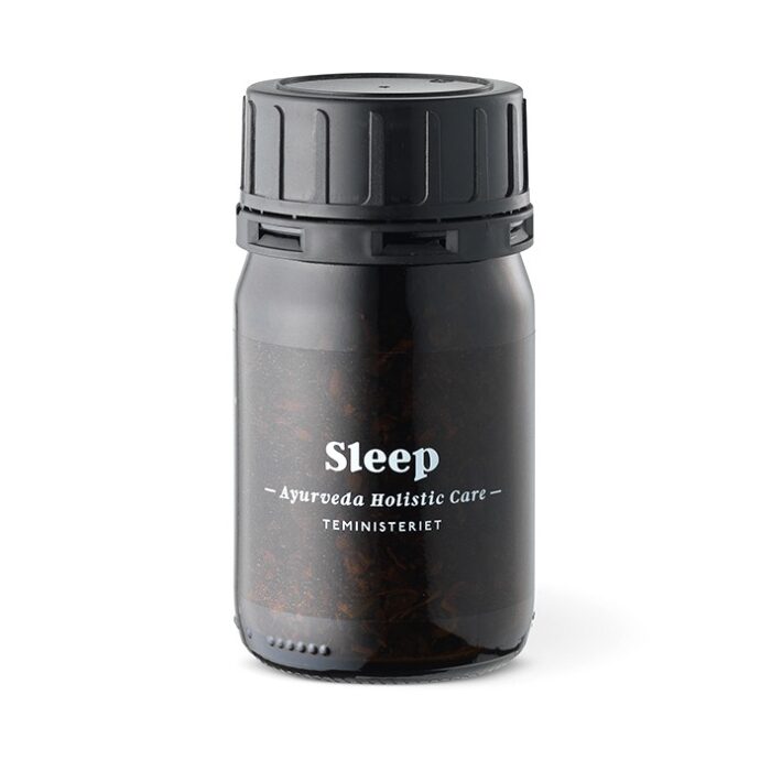 Ayurveda Sleep fra Teministeriet, er en skøn koffeinfri teblanding med nøje udvalgte, økologiske urter og naturlige aromaer. Den indeholder blandt andet rooibos, kamille, lavendel og citronmelisse, som virker beroligende og afslappende på krop og sind., Te | Ayurveda Sleep.
